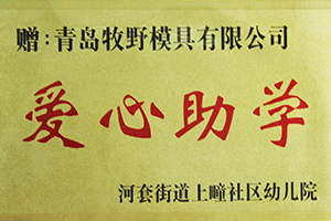青島牧野模具有限公司獲得河套街道上疃社區(qū)幼兒院愛心助學(xué)稱號;