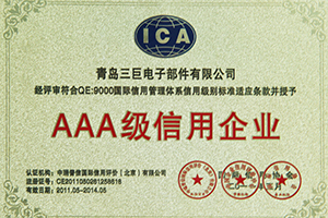 青島三巨電子部件有限公司獲得中瑞普信國際信用評價(北京)有限公司AAA級信用企業(yè);